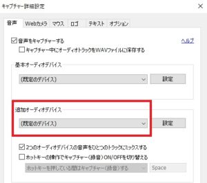 通話音声を録画やライブ配信に乗せるときは録画ソフトの音声デバイスを既定デバイスから通話ソフトで指定したデバイスに変更すればゲーム音と通話音声を同時に配信に残せます。