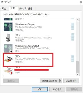 - 「録音」タブにある「ライン YAMAHA SYNCROOM driver」をダブルクリック