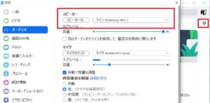 Zoomと同じく既定サウンドで選んだデバイスは選ばないでください。
