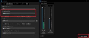 ゲーム音声を再生して音声ミキサー内のモニターが動いていることを確認してくださ。
