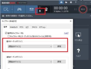 - 音声のマイク音声より既定もしくはデバイスを選択